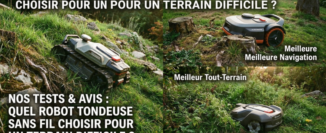 Sur Robotop.fr, nous le disons souvent : tondre un carré de gazon plat de 500 m² sans un seul arbre est à la portée de n’importe quel robot d’entrée de gamme. Mais que se passe-t-il quand votre jardin ressemble à un parcours du combattant ? Pente à 45%, sous-bois denses, terre argileuse glissante, hauts murs … Lire la suite de Nos Tests & Avis : Quel Robot Tondeuse Sans Fil Choisir pour un Terrain Difficile ? (Guide 2026)