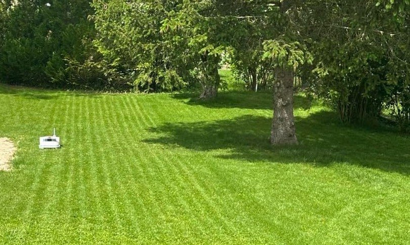 Fini le robot « bille de tête » qui rebondit aléatoirement. Le G1-800 tond en lignes parallèles (S-shape). Le résultat est visuellement très propre, avec un effet « bandes de stade de foot ». L’efficacité est redoutable : il tond 600 m² beaucoup plus vite qu’un robot aléatoire.